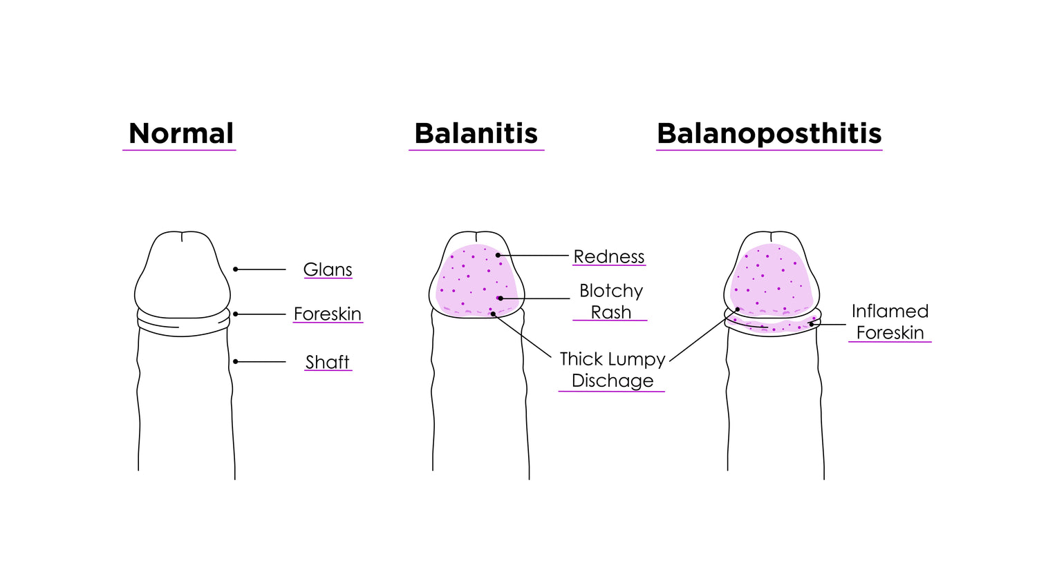 - Balanoposthitis is when both the glans and the foreskin get inflamed