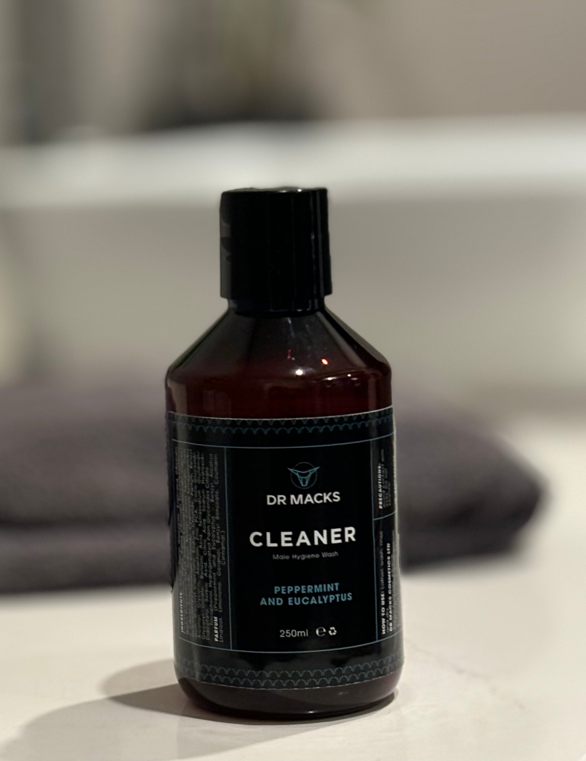 Dr Macks Cleaner is a dermatologically tested pH balanced wash designed specifically to look after the sensitive skin in the male genital area and gentle enough to be used on the whole body. It is packed full of natural ingredients with cleansing, anti-irritation, anti-odour and anti-microbial properties.